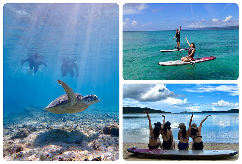 SUP体験とウミガメシュノーケルの両方を楽しめる特別プランです。